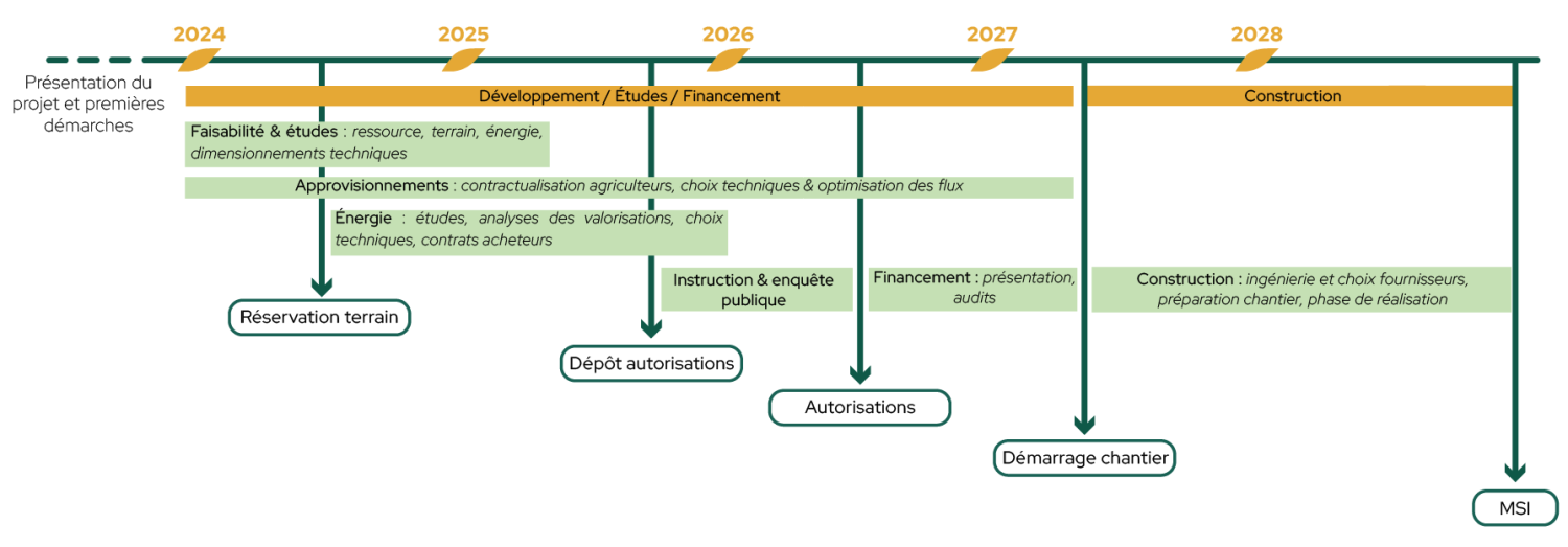 Calendrier prévisionnel du projet Morains Énergie Organique à Morains