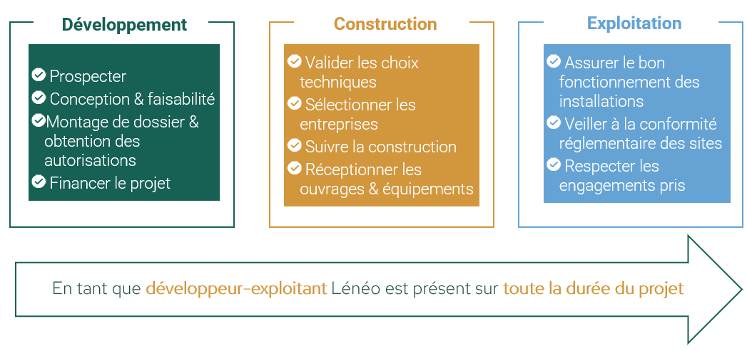 Forte d’une expérience de plus de 20 ans de ses fondateurs dans les énergies renouvelables, Lénéo conçoit, réalise et exploite des sites de production d’énergies renouvelables. La société intègre en tant que développeur-exploitant toute la chaîne de valeur de la conception de ses installations jusqu’à leur exploitation. A partir d’un concept novateur, Lénéo a pour objectif de décarboner les activités en diversifiant les usages énergétiques du biométhane produit. Grâce à un gisement mobilisable localement et des projets d’envergure industrielle, Lénéo apporte une alternative concrète de réduction de l’empreinte carbone sur les territoires et ainsi, contribue à la neutralité carbone en 2050.